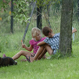 Ula pojechała niedawno do domu z matką, a tak jej się podobało u nas, że nie chciała wracać. Hitem ostatnich dni były "plenery malarskie" pod jabłonką oraz zabawa ślimakami.